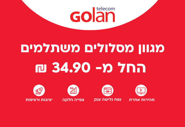 במילוי פרטיך הנך מאשר/ת בזאת שקראת והבנת את מדיניות הפרטיות שבאתר גולן טלקום, והנך מסכים/ה לאיסוף ושימוש במידע האישי שלך בהתאם למדיניות זו, לרבות יצירת קשר על ידי נציג מטעם גולן טלקום באמצעות הטלפון/הודעות WhatsApp/SMS להשלמת התהליך.